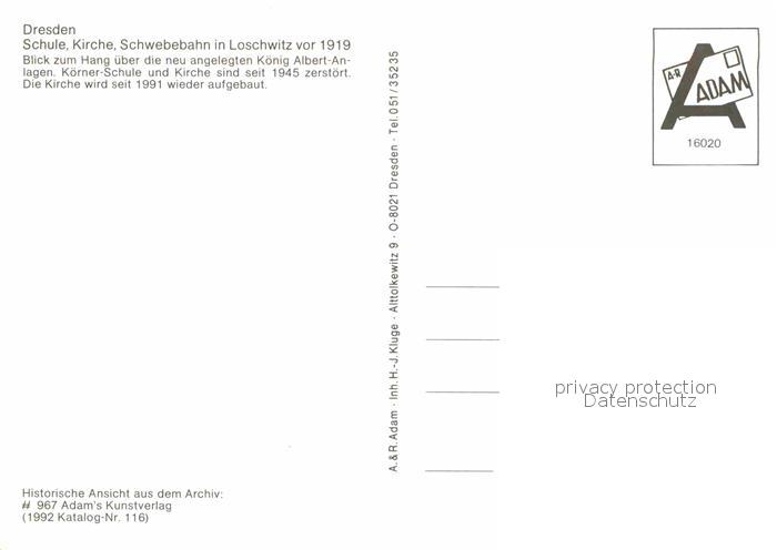 72651670 Loschwitz Schule Kirche Schwebebahn postalisch nicht gelaufen Erhaltung siehe scans [NatalD47] KatCode: 11110014262000