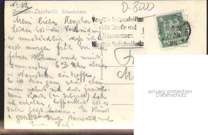 41976228 alte Postkarte Loschwitz Teilansicht mit Schwebebahn postalisch gelaufen Erhaltung siehe scans KatCode: 11110014262000