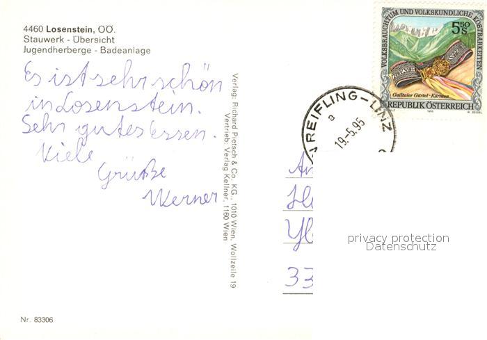 73082882 alte Postkarte Losenstein Stauwerk Jugendherberge Badeanlage postalisch gelaufen Erhaltung siehe scans [FriedD77] KatCode: 11390314041509
