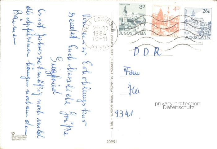 old postcard Losinj Stadtansicht postalisch gelaufen Erhaltung siehe scans
