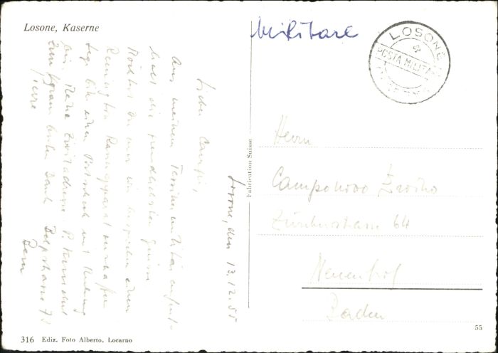 10723985 alte Postkarte Losone Kaserne postalisch gelaufen KatCode: 11470210655966