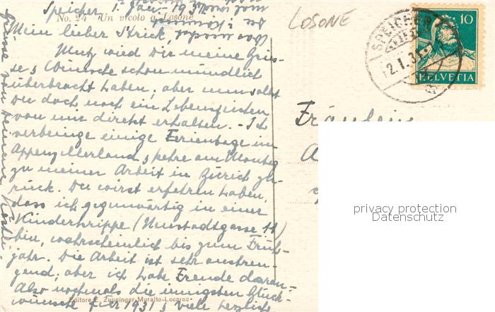 13793920 alte Postkarte Losone TI Dorfpartie – Gasse – Kuenstlerkarte E. Zuppinger postalisch gelaufen Erhaltung siehe scans [LiesaD40] KatCode: 11470210655966