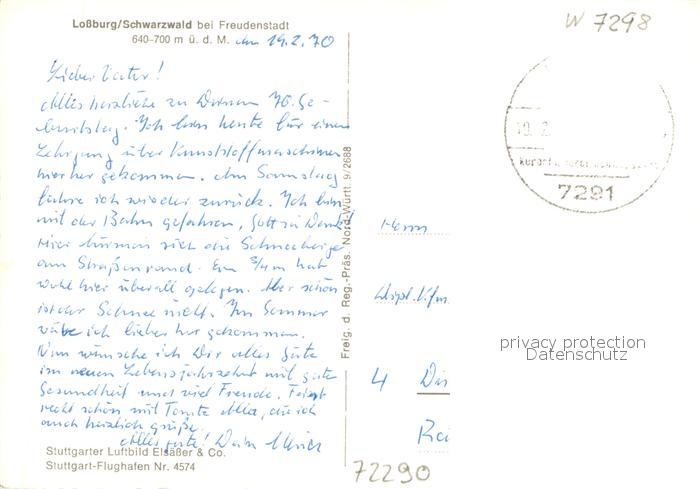 73749580 alte Postkarte Lossburg Fliegeraufnahme postalisch gelaufen Erhaltung siehe scans [WerneD78] KatCode: 11110008237045
