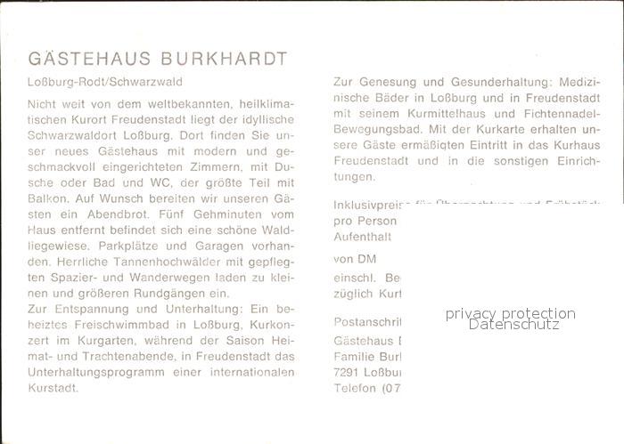 71909887 Lossburg Gaestehaus Burkhardt postalisch nicht gelaufen Werbekarte (keine Postkarte) Erhaltung siehe scans KatCode: 11110008237045