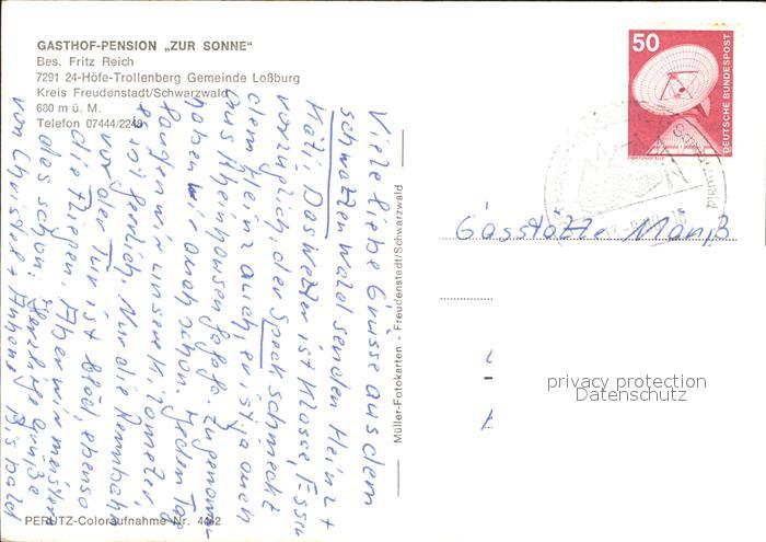 72529109 alte Postkarte Lossburg Gasthof Pension Zur Sonne Gaststube postalisch gelaufen Erhaltung siehe scans KatCode: 11110008237045