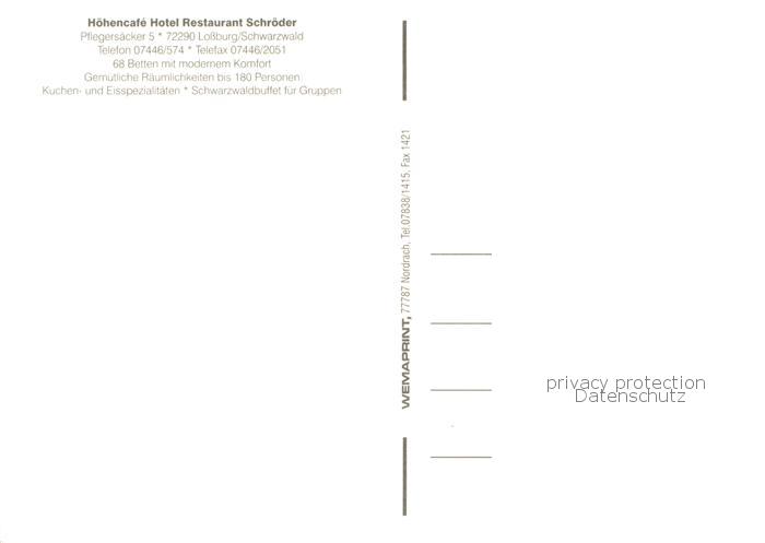 73761310 Lossburg HoehenCafe Hotel Restaurant Schroeder postalisch nicht gelaufen Erhaltung siehe scans [FriedD77] KatCode: 11110008237045