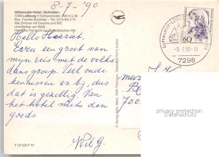 72936668 alte Postkarte Lossburg Hoehencafe Hotel Schroeder postalisch gelaufen Erhaltung siehe scans [FriedD77] KatCode: 11110008237045