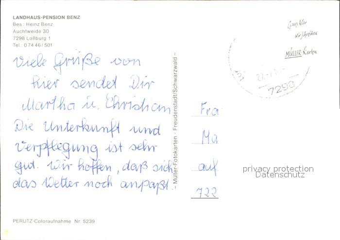 72221827 alte Postkarte Lossburg Landhaus-Pension Benz postalisch gelaufen Erhaltung siehe scans KatCode: 11110008237045