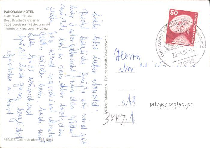 72463036 alte Postkarte Lossburg Panorama Hotel Hallenbad postalisch gelaufen Erhaltung siehe scans KatCode: 11110008237045