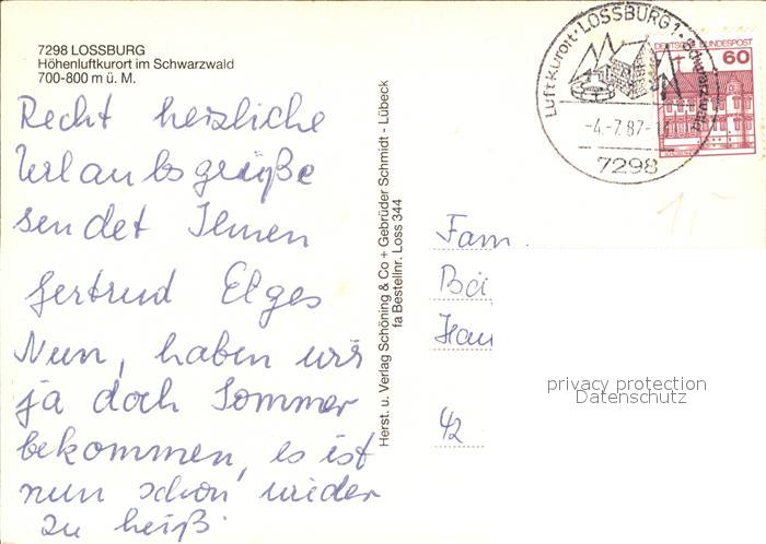 72529117 alte Postkarte Lossburg Panorama Kurpark Schwimmbad Weiher postalisch gelaufen Erhaltung siehe scans KatCode: 11110008237045