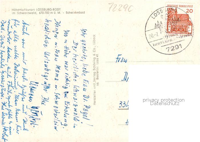 73853552 alte Postkarte Lossburg Panorama Schwimmbad postalisch gelaufen Erhaltung siehe scans [WerneD78] KatCode: 11110008237045