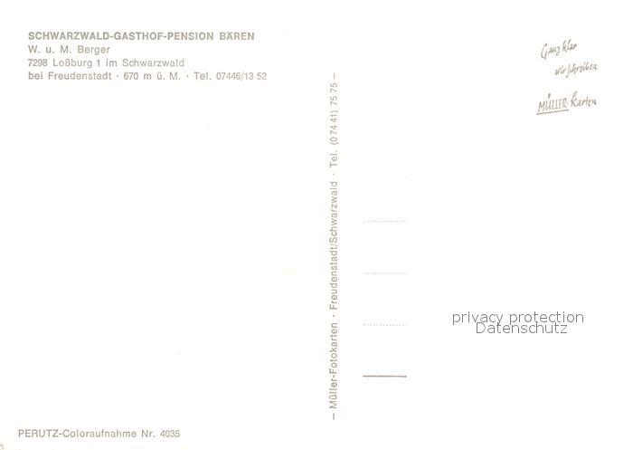 73306452 Lossburg Schwarzwald Gasthof Pension Baeren Fachwerkhaus Kirchturm postalisch nicht gelaufen Erhaltung siehe scans [FriedD77] KatCode: 11110008237045