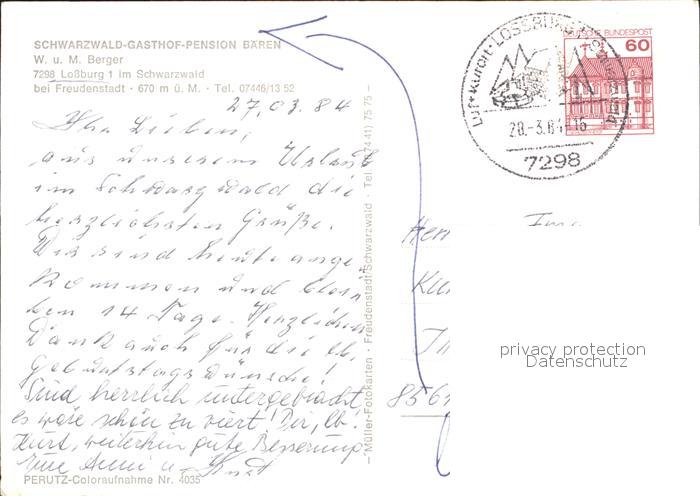 72057188 alte Postkarte Lossburg Schwarzwald Gasthof Pension Baeren Fachwerkhaus postalisch gelaufen Erhaltung siehe scans KatCode: 11110008237045