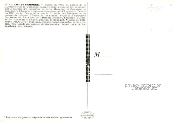 13592348 Lot-et-Garonne Departement Carte de la région Parties de la Guyenne et de la Gascogne postalisch nicht gelaufen Erhaltung siehe scans [FriedD77] Frie Katcode 11170047147001