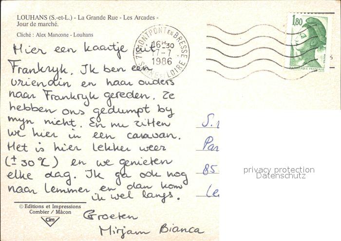 12310262 carte postale Louhans Grande Rue Arcades Jour marche postalisch gelaufen Erhaltung siehe scans KatCode: 11170071471263