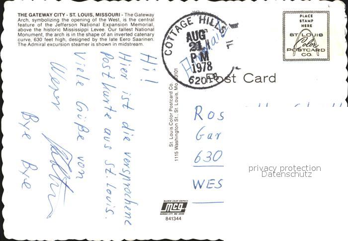 72456701 old postcard Louis Missouri St Gateway City postalisch gelaufen Erhaltung siehe scans KatCode: 14140