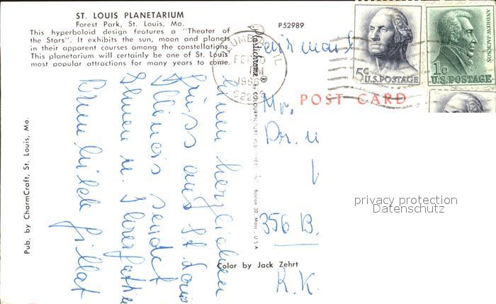 72456668 old postcard Louis Missouri St Planetarium postalisch gelaufen Erhaltung siehe scans KatCode: 14140