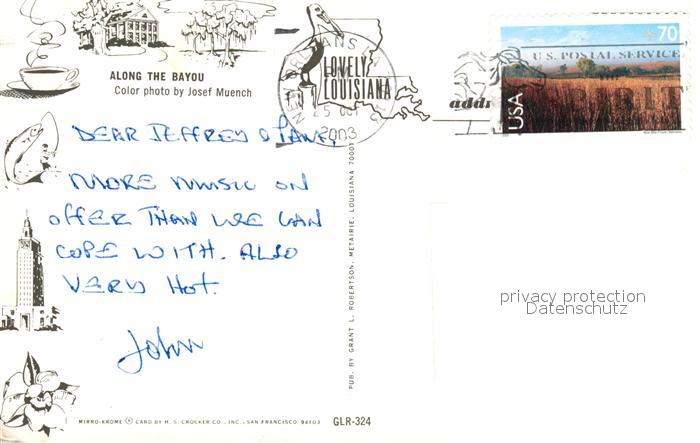 73061544 old postcard Louisiana Along the Bayou postalisch gelaufen Erhaltung siehe scans [WerneD78] KatCode: 14140270000000