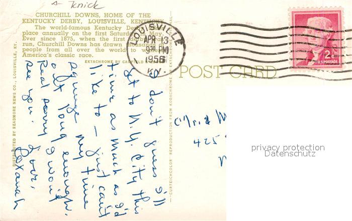 72944242 old postcard Louisville Kentucky Churchill Downs Home of the Kentucky Derby postalisch gelaufen Erhaltung siehe scans [WerneD78] KatCode: 14140190000000