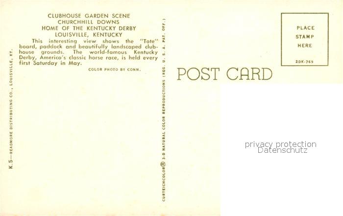 73058996 Louisville Kentucky Clubhouse Garden Scene Churchill Downs postalisch nicht gelaufen Erhaltung siehe scans [WerneD78] KatCode: 14140190000000