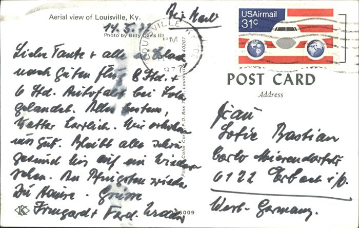 71395881 old postcard Louisville Kentucky Luftbild postalisch gelaufen gute Erhaltung KatCode: 14140190000000