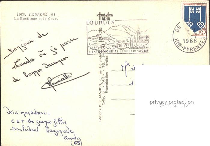 11860492 carte postale Lourdes Hautes Pyrenees Basilique Gave postalisch gelaufen Erhaltung siehe scans KatCode: 11170065165286