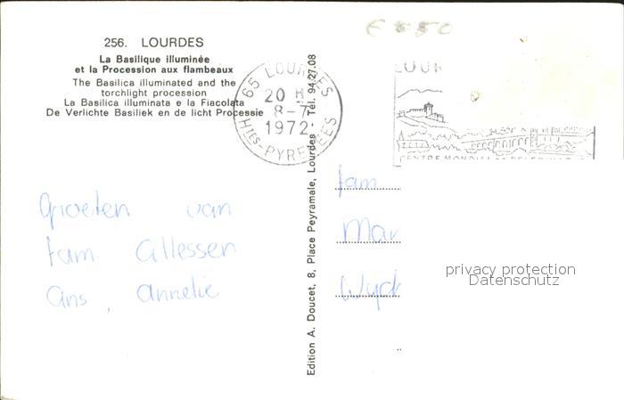 12306114 carte postale Lourdes Hautes Pyrenees Basillique Illuminee Precession postalisch gelaufen Erhaltung siehe scans KatCode: 11170065165286