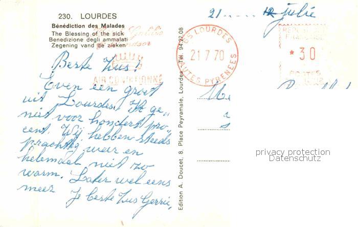 12889231 carte postale Lourdes Hautes Pyrenees Benediction des Malades postalisch gelaufen Erhaltung siehe scans [WerneD78] KatCode: 11170065165286