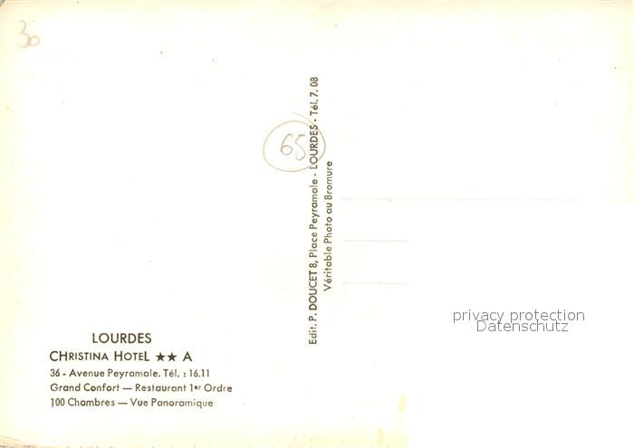 13153107 Lourdes Hautes Pyrenees Christina Hotel postalisch nicht gelaufen Erhaltung siehe scans [LiesaD40] KatCode: 11170065165286