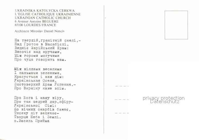 12683866 Lourdes Hautes Pyrenees Eglise catholique Ukrainienne postalisch nicht gelaufen Erhaltung siehe scans [WerneD78] KatCode: 11170065165286