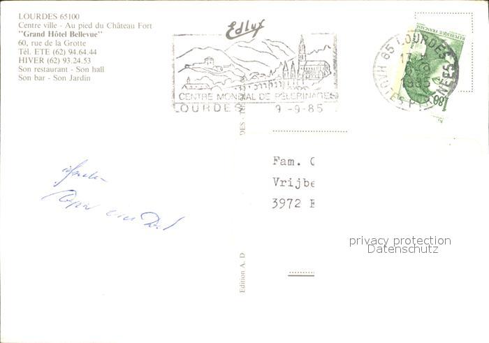 11909050 carte postale Lourdes Hautes Pyrenees Grand Hotel Bellevue postalisch gelaufen Erhaltung siehe scans KatCode: 11170065165286