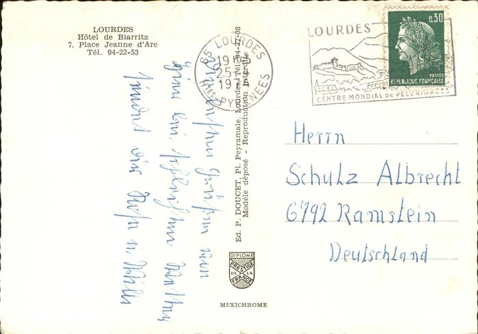 11475555 Lourdes Hautes Pyrenees Hotel de Biarritz Restaurant Eglise KatCode 11170065165286