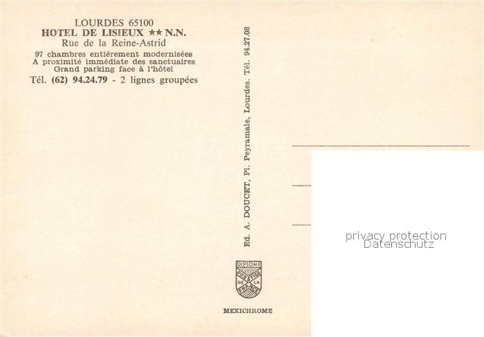 13319468 Lourdes Hautes Pyrenees Hotel de Lisieux postalisch nicht gelaufen Erhaltung siehe scans [FriedD77] KatCode: 11170065165286