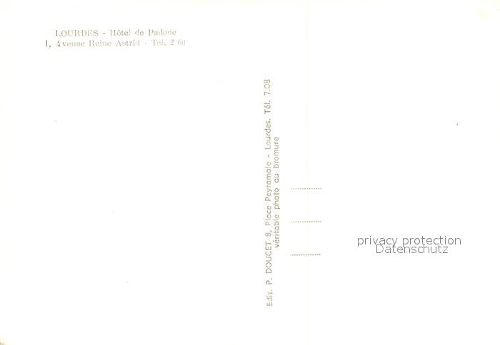 13551059 Lourdes Hautes Pyrenees Hôtel de Padoue postalisch nicht gelaufen Erhaltung siehe scans [FriedD77] KatCode: 11170065165286