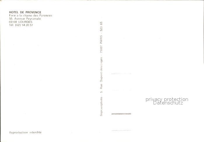 12456022 Lourdes Hautes Pyrenees Hotel de Provence postalisch nicht gelaufen Erhaltung siehe scans KatCode: 11170065165286