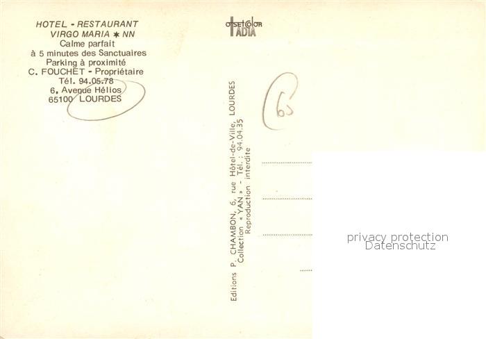 13219435 Lourdes Hautes Pyrenees Hotel Restaurant Virgo Maria KatCode 11170065165286