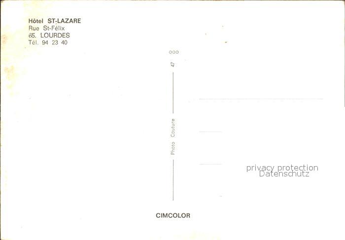 12013539 Lourdes Hautes Pyrenees Hotel Saint Lazare postalisch nicht gelaufen Erhaltung siehe scans KatCode: 11170065165286