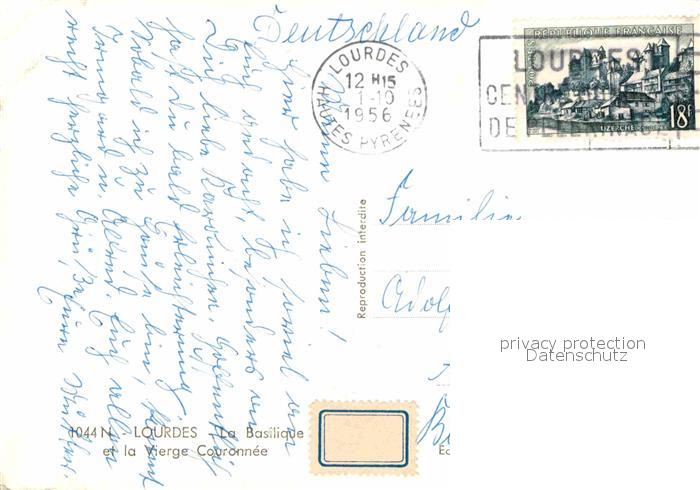 12890130 carte postale Lourdes Hautes Pyrenees La Basilique et la Vierge Couronnee postalisch gelaufen Erhaltung siehe scans [WerneD78] KatCode: 11170065165286