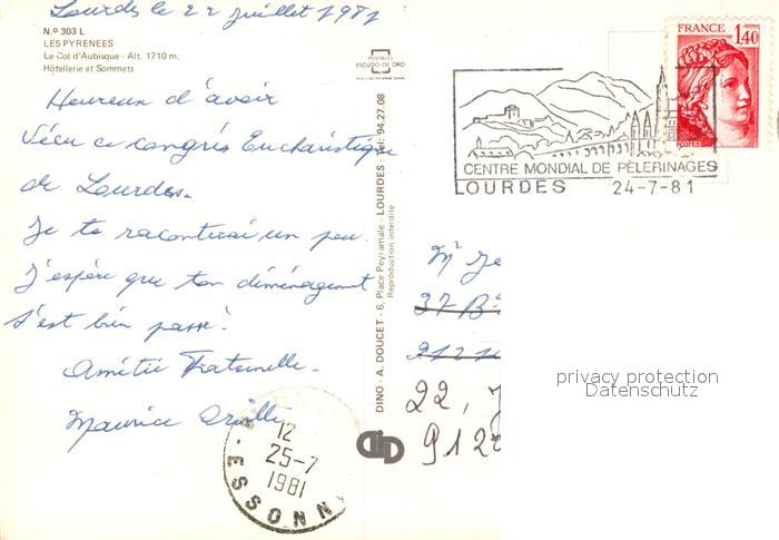 13588327 Lourdes Hautes Pyrenees Le Col d’Aubisque Hotellerie et Sommets postalisch gelaufen Erhaltung siehe scans [WerneD78] carte postale Wern Katcode 11170065165286