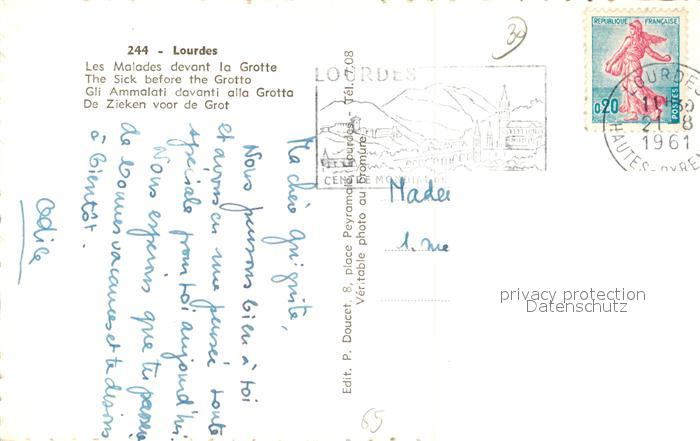 13483326 carte postale Lourdes Hautes Pyrenees Les Malades devant la Grotte postalisch gelaufen Erhaltung siehe scans [FriedD77] KatCode: 11170065165286