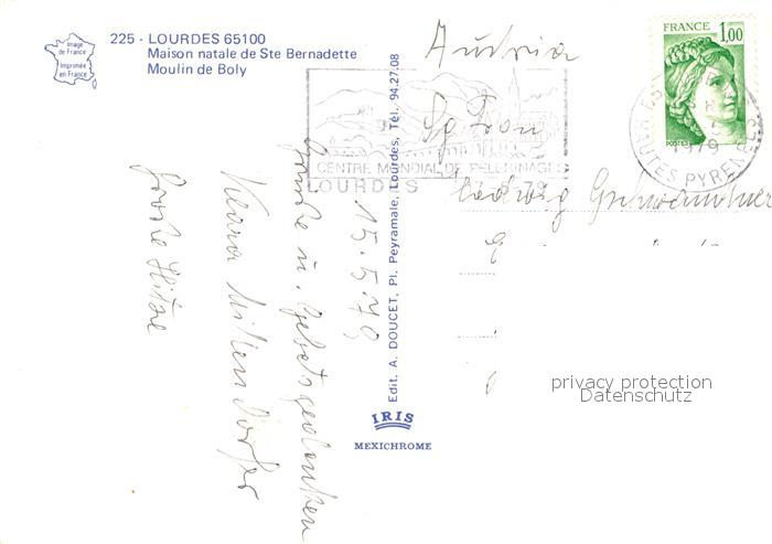 13243534 carte postale Lourdes Hautes Pyrenees Maison natale de Sainte Bernadette Moulin de Boly postalisch gelaufen Erhaltung siehe scans [FriedD77] KatCode: 11170065165286