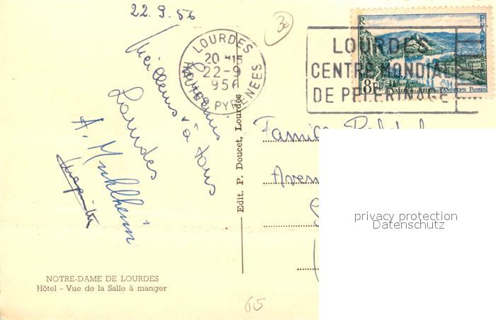 13483956 carte postale Lourdes Hautes Pyrenees Notre Dame de Lourdes Hotel Salle a manger postalisch gelaufen Erhaltung siehe scans [FriedD77] KatCode: 11170065165286