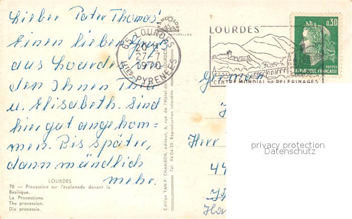 13093612 Lourdes Hautes Pyrenees Procession sur esplanade devant la Basilique KatCode 11170065165286