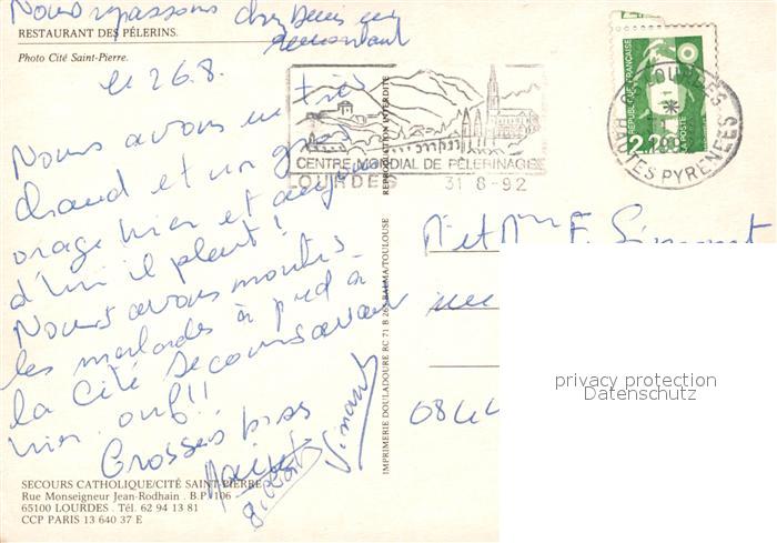 13327931 carte postale Lourdes Hautes Pyrenees Restaurant des Pelerins postalisch gelaufen Erhaltung siehe scans [FriedD77] KatCode: 11170065165286