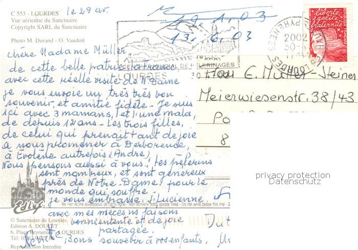 13325978 carte postale Lourdes Hautes Pyrenees Sanctuaire vue aérienne postalisch gelaufen Erhaltung siehe scans [FriedD77] KatCode: 11170065165286