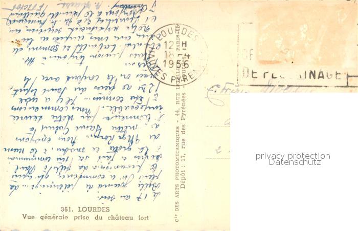 12934242 carte postale Lourdes Hautes Pyrenees Vue generale prise du chateau fort postalisch gelaufen Erhaltung siehe scans [FriedD77] KatCode: 11170065165286