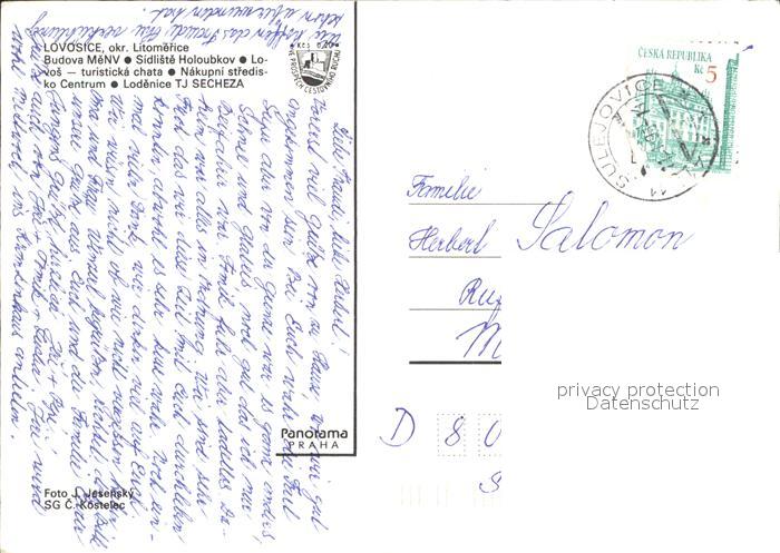 old postcard Lovosice Budova Menv Holoubkov Lovos postalisch gelaufen Erhaltung siehe scans