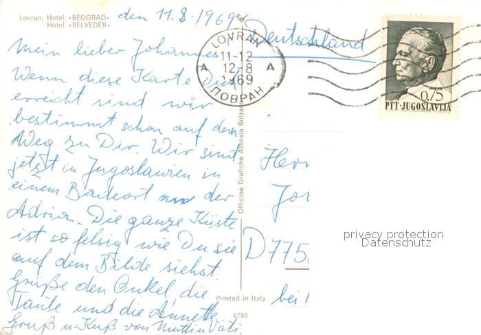 old postcard Lovran Croatia Hotel Beograd m. Meer postalisch gelaufen Erhaltung siehe scans [LiesaD40]