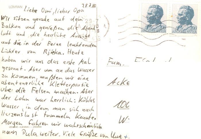 old postcard Lovran Lovrana Laurana Croatia Fliegeraufnahme postalisch gelaufen Erhaltung siehe scans [FriedD77]