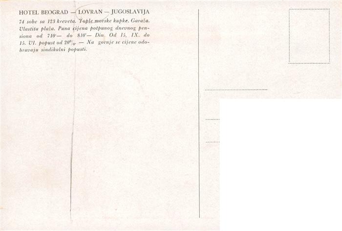 73940913 Lovran Lovrana Laurana Croatia Hotel Beograd postalisch nicht gelaufen Erhaltung siehe scans [WerneD78] Wern Katcode 11260